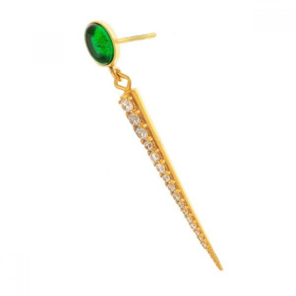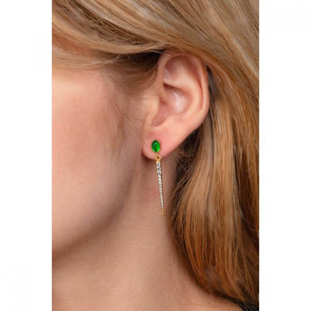 Ασημένια και επιχρυσωμένα μακριά σκουλαρίκια με σμαραγδί πέτρα και λευκά ζιργκόν