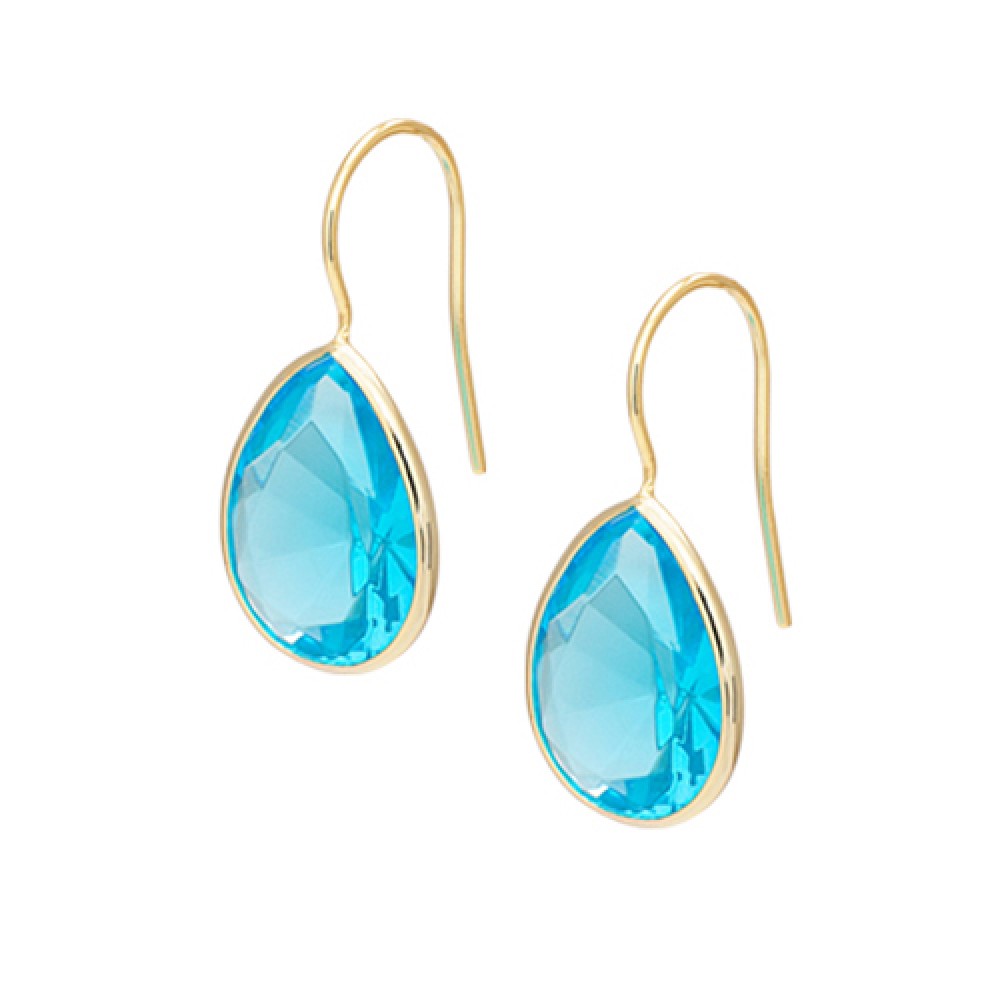 Ασημένια και επιχρυσωμένα κρεμαστά σκουλαρίκια με πέτρες aqua marine σε σχήμα σταγόνας
