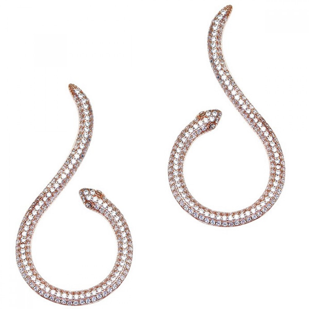Ασημένια με επιχρύσωση ροζ χρυσού σκουλαρίκια με σχήμα φιδιού