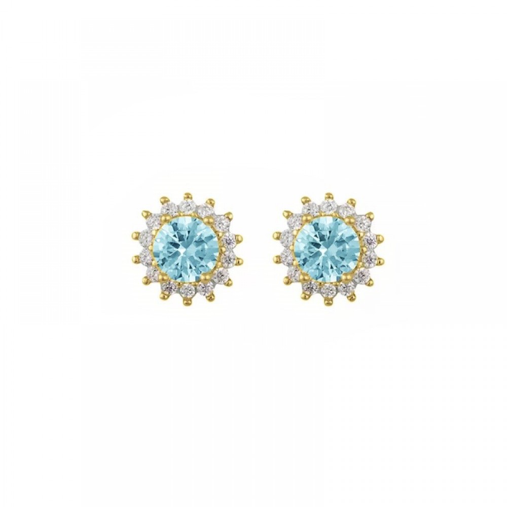 Ασημένια και επιχρυσωμένα σκουλαρίκια ροζέτες με aqua-marine πέτρα