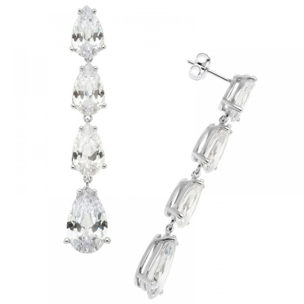 Ασημένια μακριά σκουλαρίκια με τέσσερις εντυπωσιακές πέτρες ζιργκόν