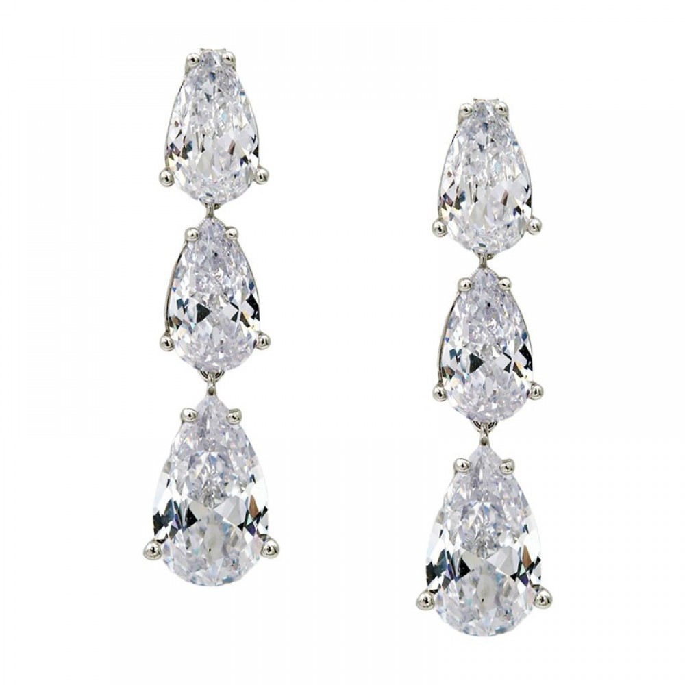 Ασημένια μακριά σκουλαρίκια με τρεις εντυπωσιακές πέτρες ζιργκόν