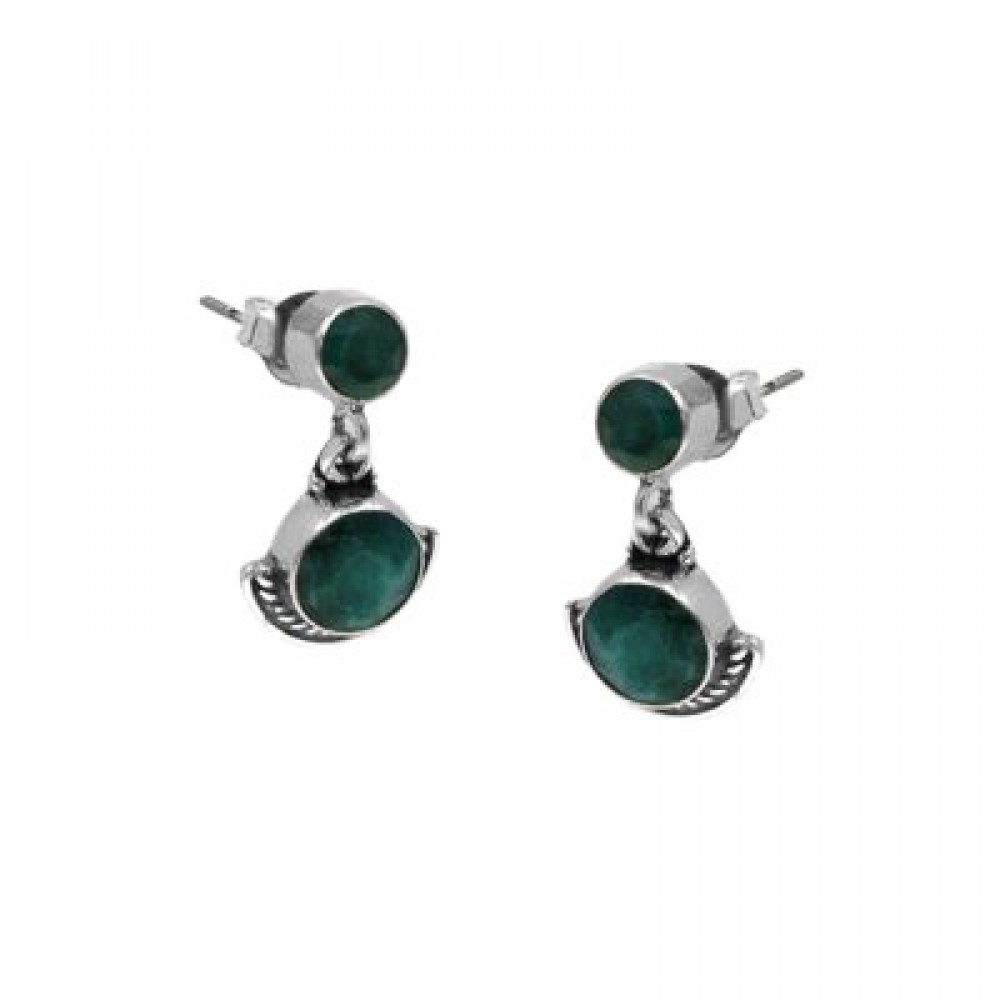 Ασημένια κρεμαστά σκουλαρίκια με ημιπολύτιμες πέτρες σμαράγδια