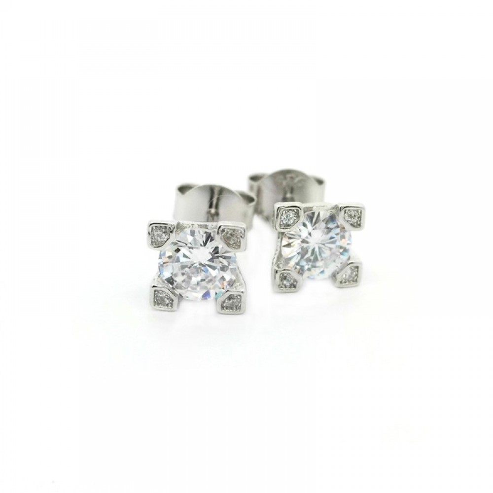 Μικρά κουμπωτά σκουλαρίκια με πέτρες ζιργκόν σε λευκό χρώμα