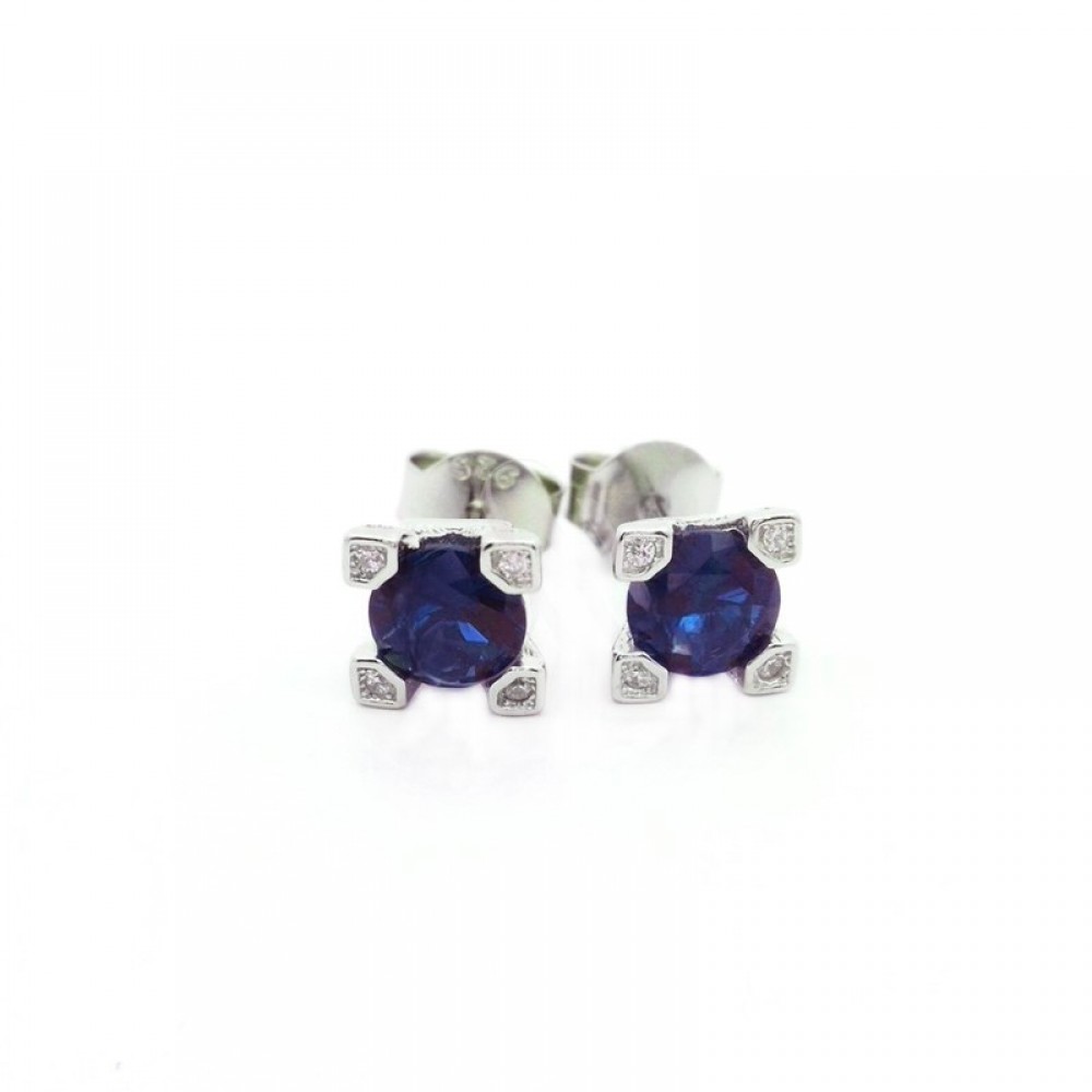 Μικρά κουμπωτά σκουλαρίκια με πέτρες ζιργκόν σε λευκό και μπλε χρώμα