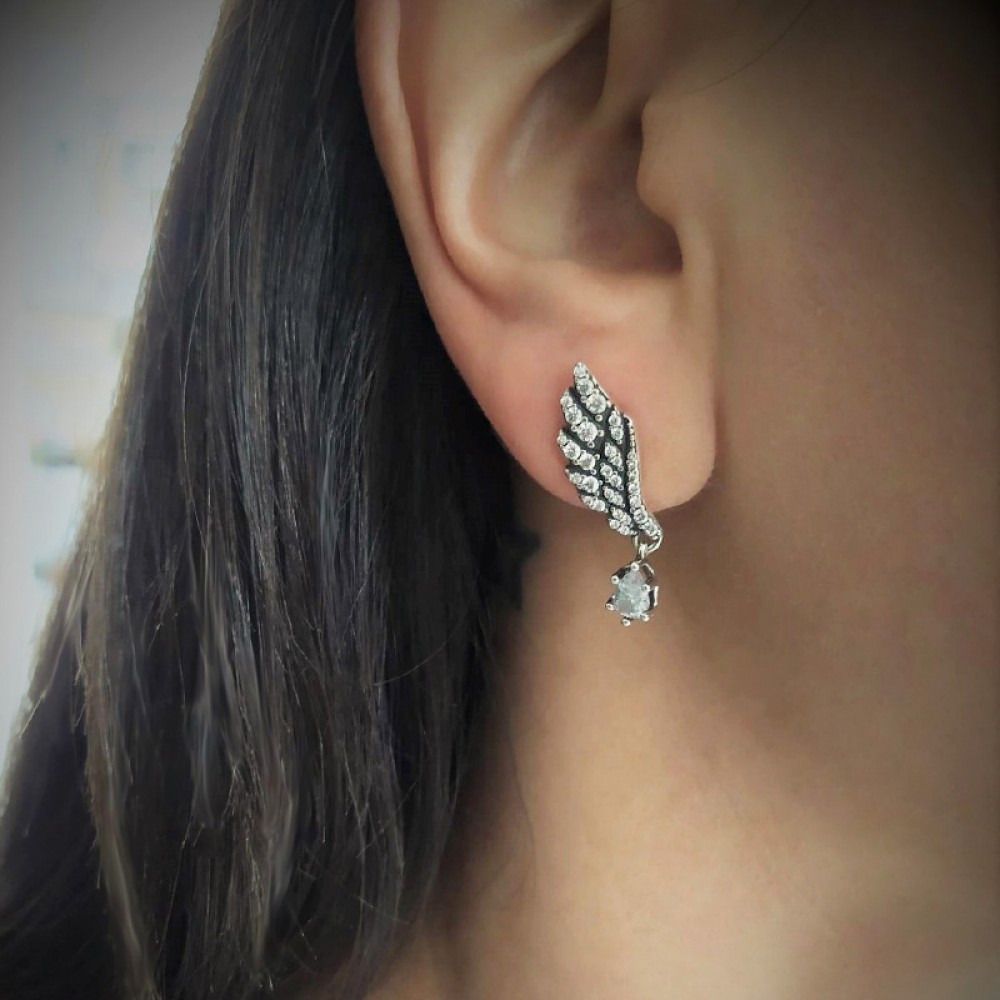 Ασημένια κουμπωτά σκουλαρίκια φτερά αγγέλου
