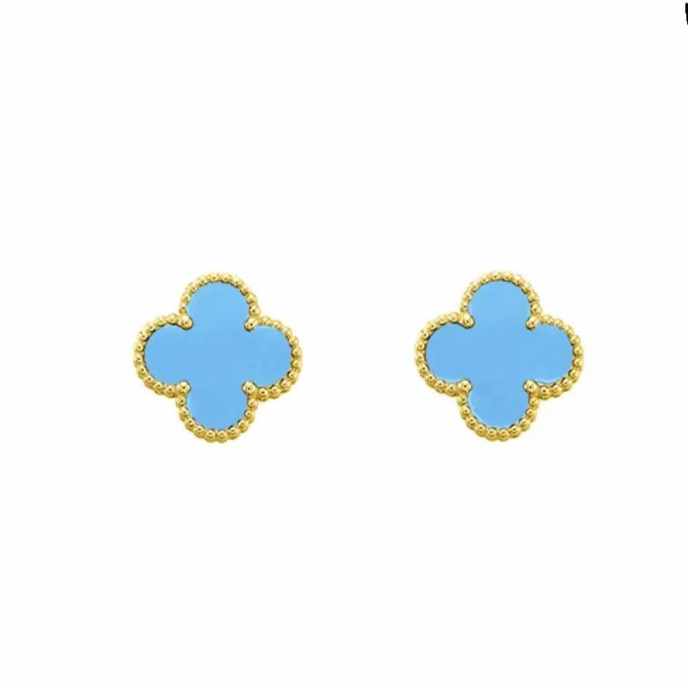 Ασημένια και επιχρυσωμένα κουμπωτά σκουλαρίκια με πέτρες τιρκουάζ