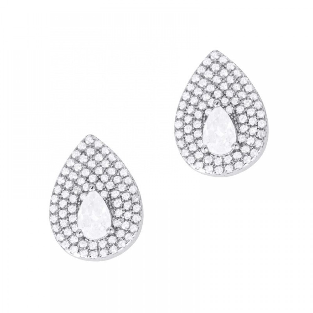 Ασημένια σκουλαρίκια με σχήμα σταγόνας και πέτρες ζιργκόν σε λευκό χρώμα