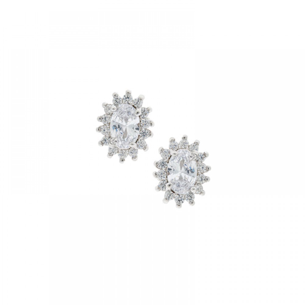 Ασημένια σκουλαρίκια ροζέτες με λευκές πέτρες