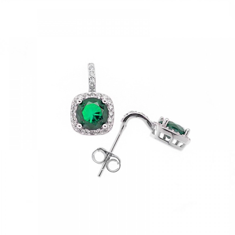 Ασημένια κουμπωτά σκουλαρίκια τετράγωνη ροζέτα με πράσινη πέτρα
