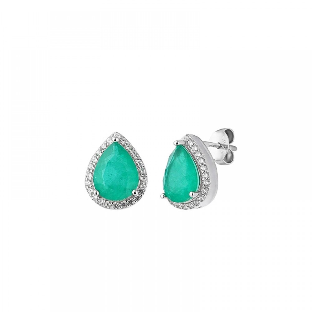 Ασημένια σκουλαρίκια ροζέτες με σχήμα σταγόνας και πράσινη πέτρα