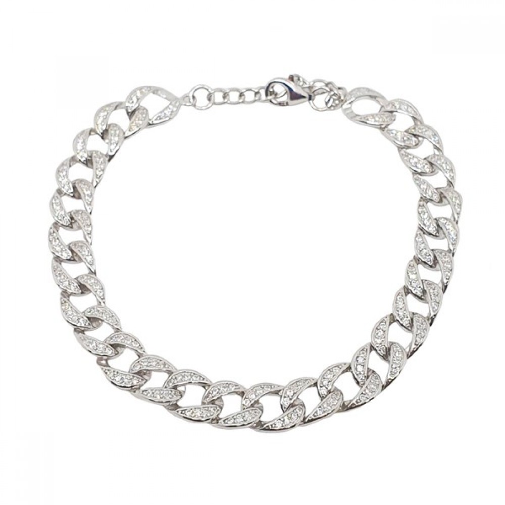 Ασημένια φαρδιά αλυσίδα για το χέρι με πέτρες ζιργκόν