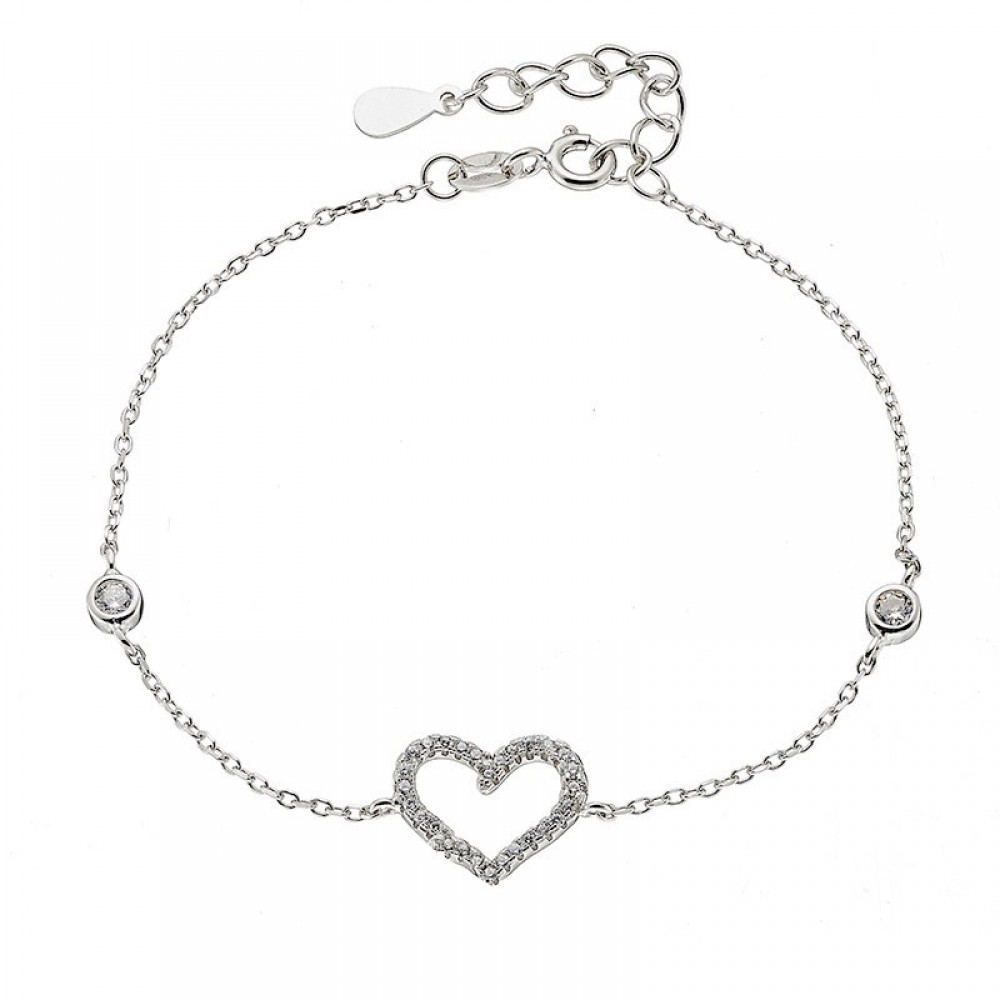 Βραχιόλι με καρδιά διακοσμημένη με πέτρες ζιργκόν σε λευκό χρώμα