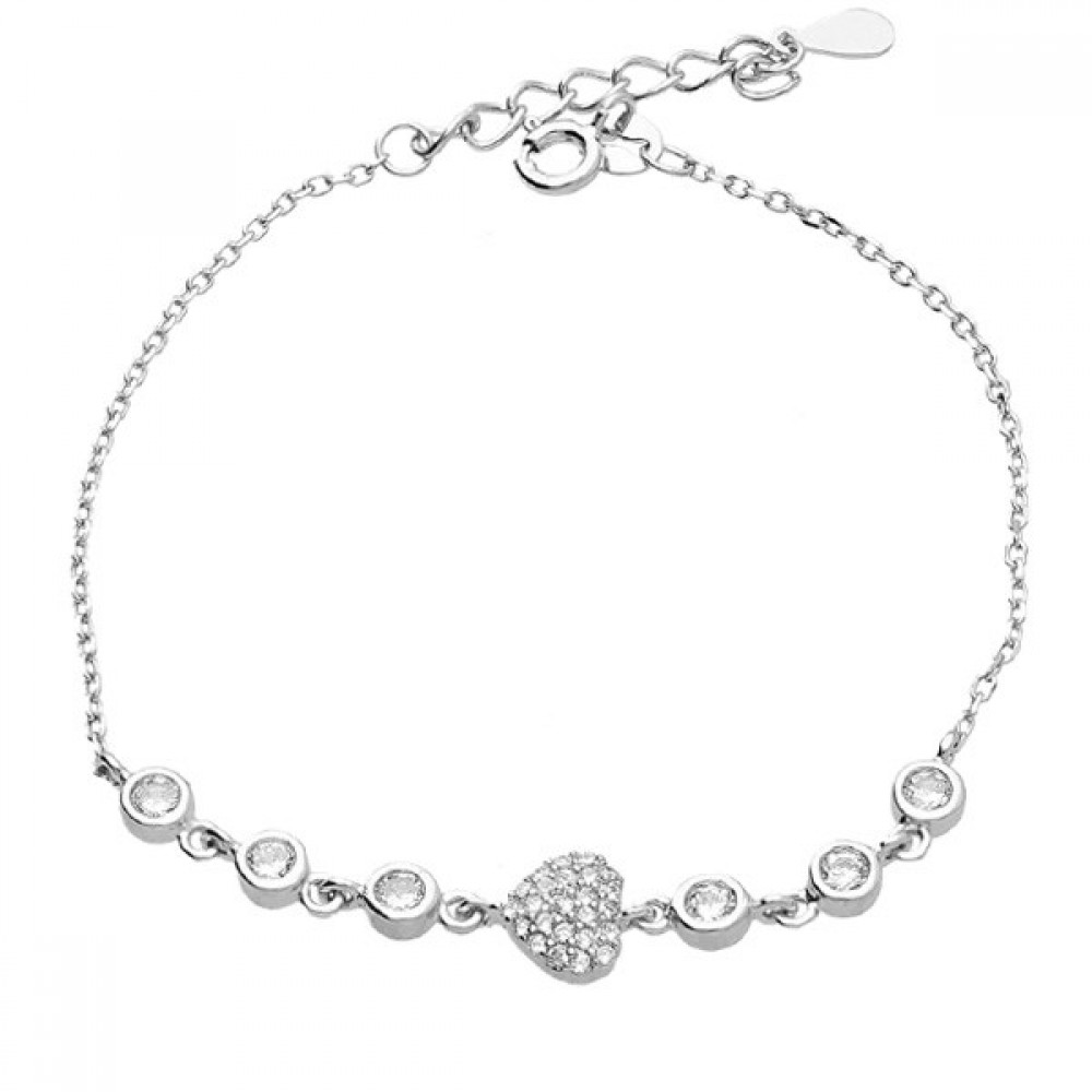 Βραχιόλι με καρδιά και πέτρες ζιργκόν στην αλυσίδα