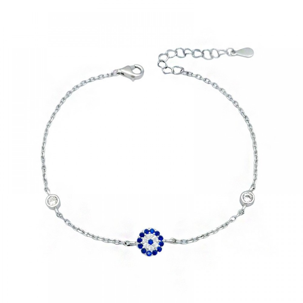 Βραχιόλι με μπλε ματάκι και πέτρες ζιργκόν στην αλυσίδα