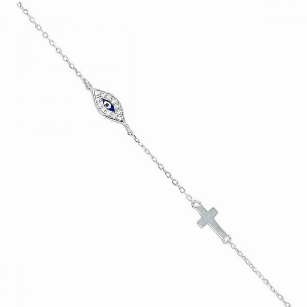 Ασημένιο διακριτικό βραχιόλι με μάτι και σταυρό