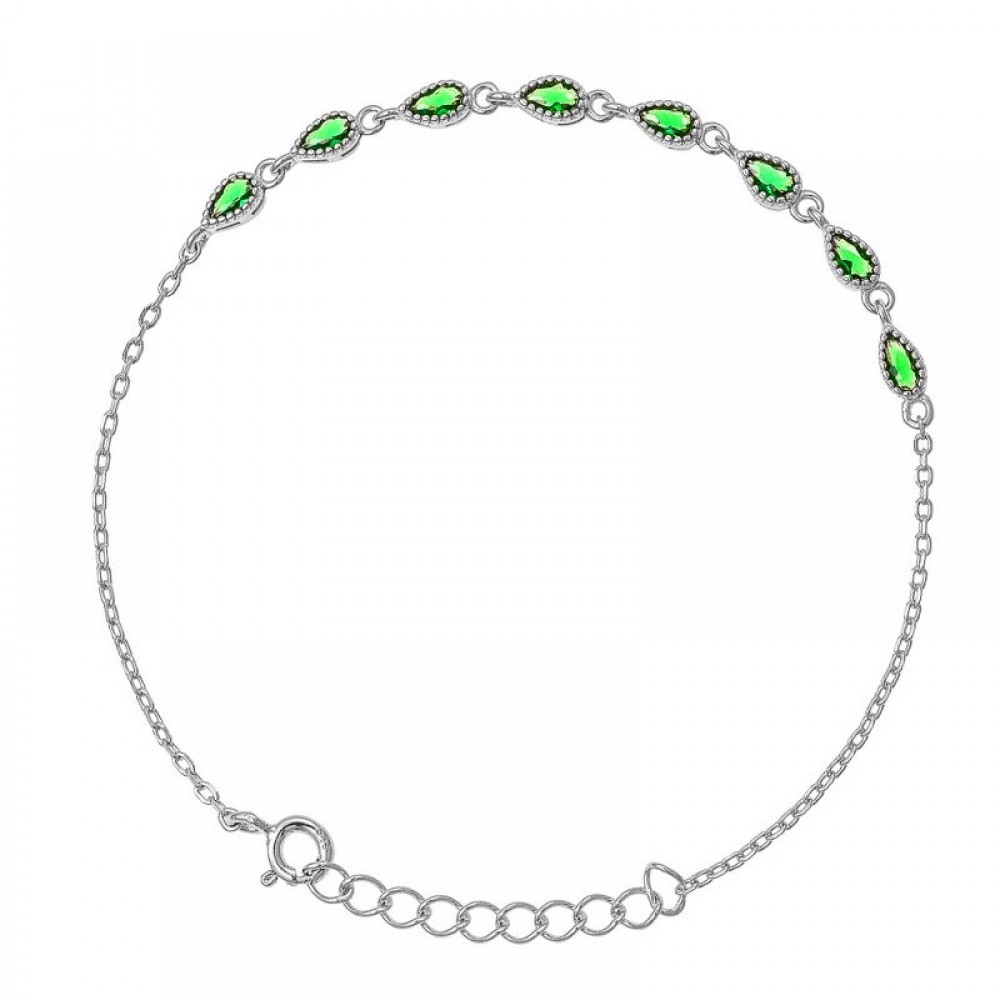 • Ασημένιο αλυσιδάκι για το χέρι με πράσινες πέτρες ζιργκόν