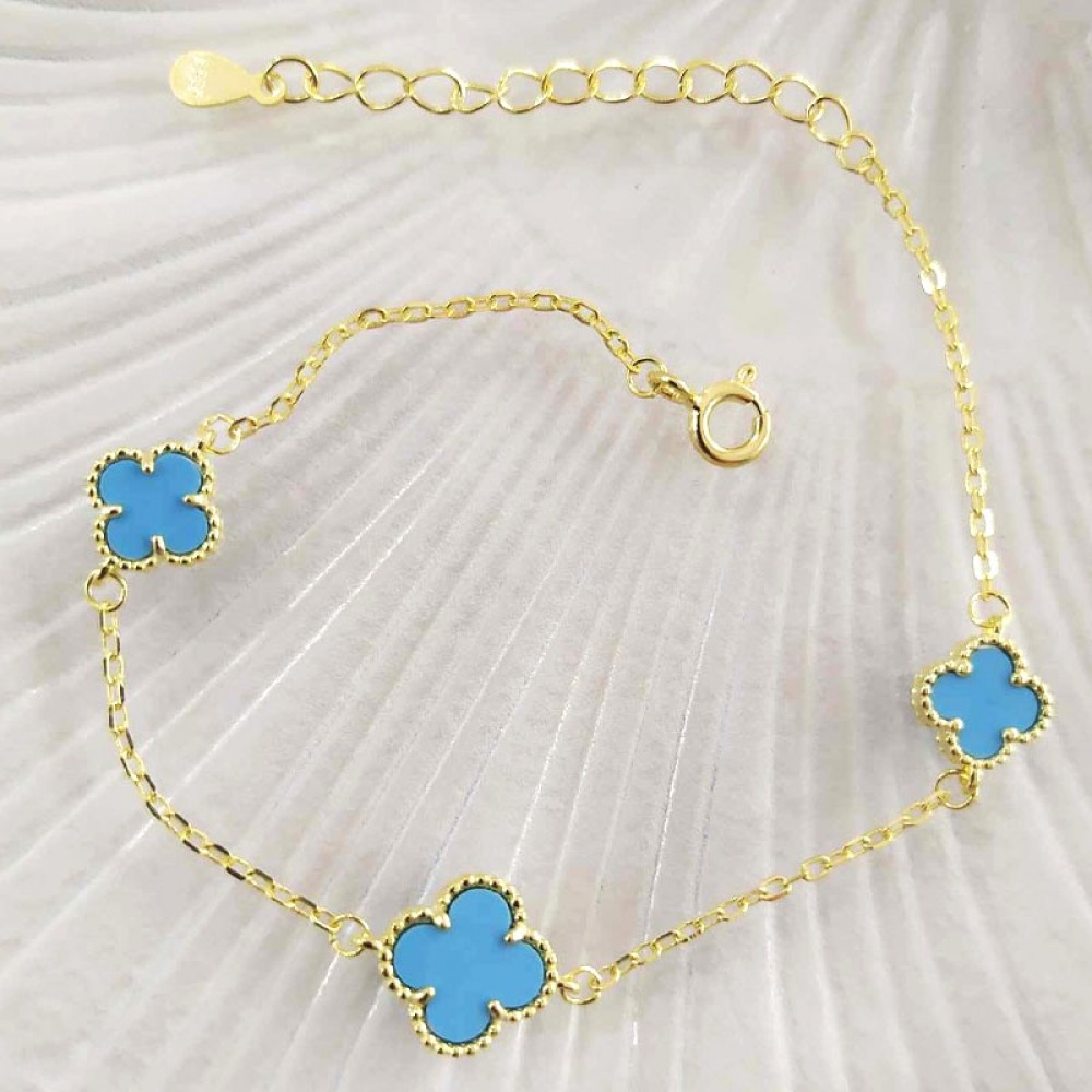Ασημένιο και επιχρυσωμένο βραχιόλι με τρεις σταυρούς από πέτρες τιρκουάζ