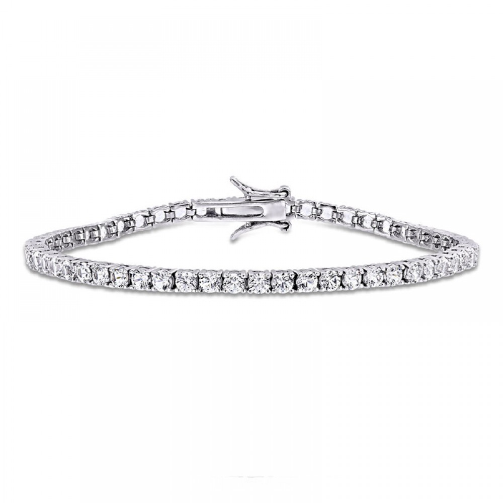 Ασημένιο βραχιόλι - ριβιέρα με λευκές πέτρες ζιργκόν και κούμπωμα ασφαλείας