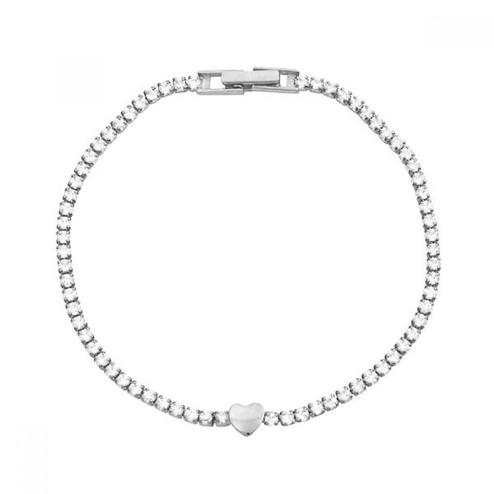 Ασημένιο βραχιόλι ριβιέρα με καρδιά στο κέντρο