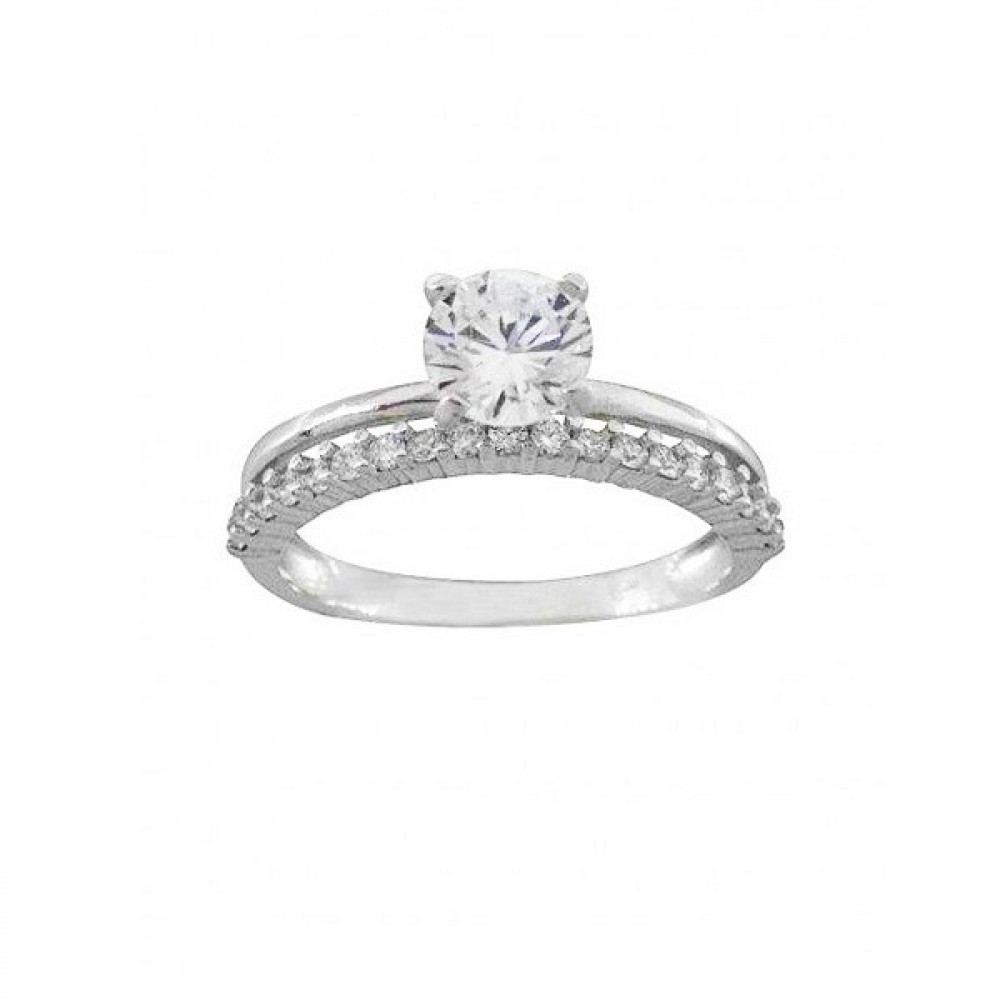 Διπλό μονόπετρο δαχτυλίδι με ενσωματωμένο βεράκι