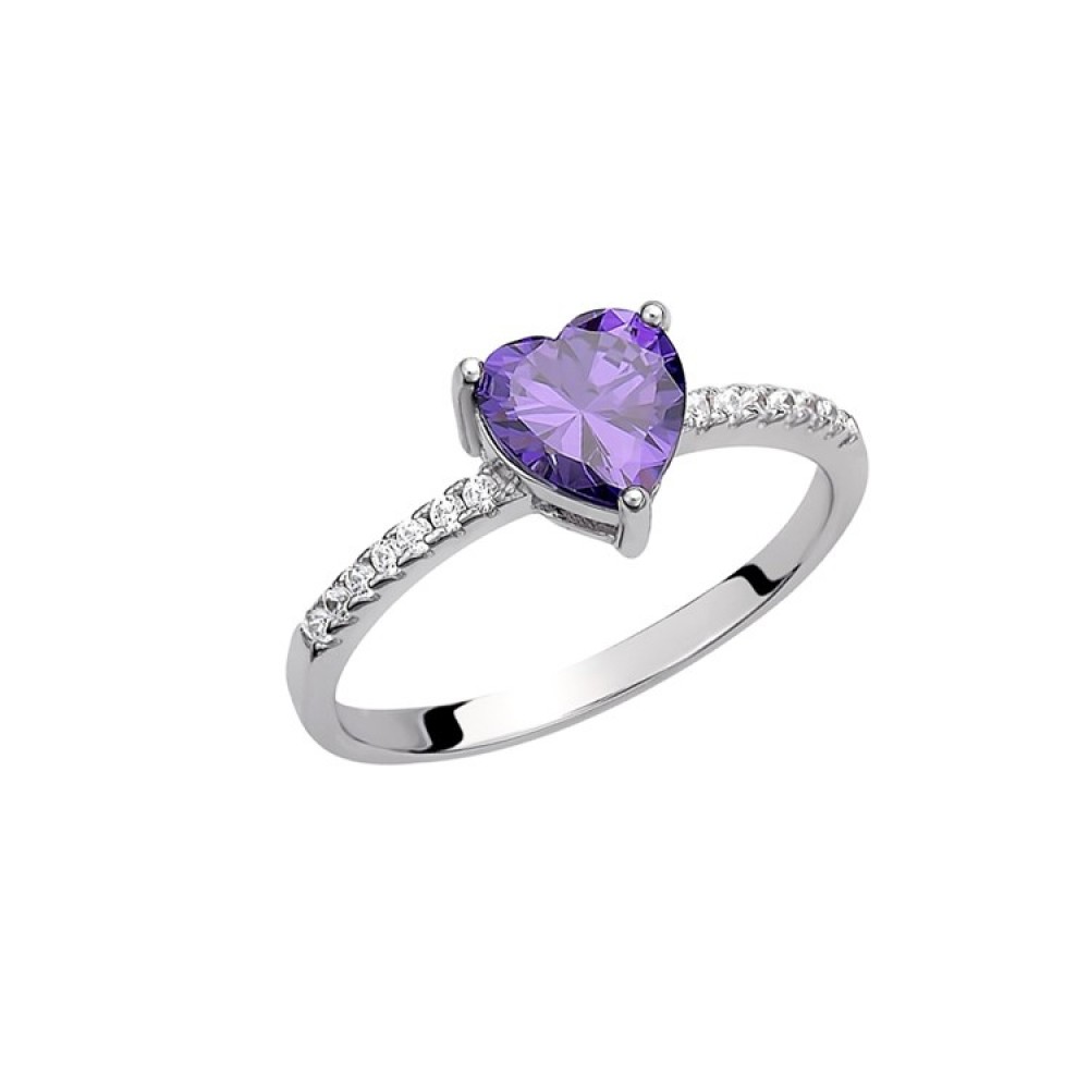 Δαχτυλίδι μονόπετρο με καρδιά από αμέθυστο