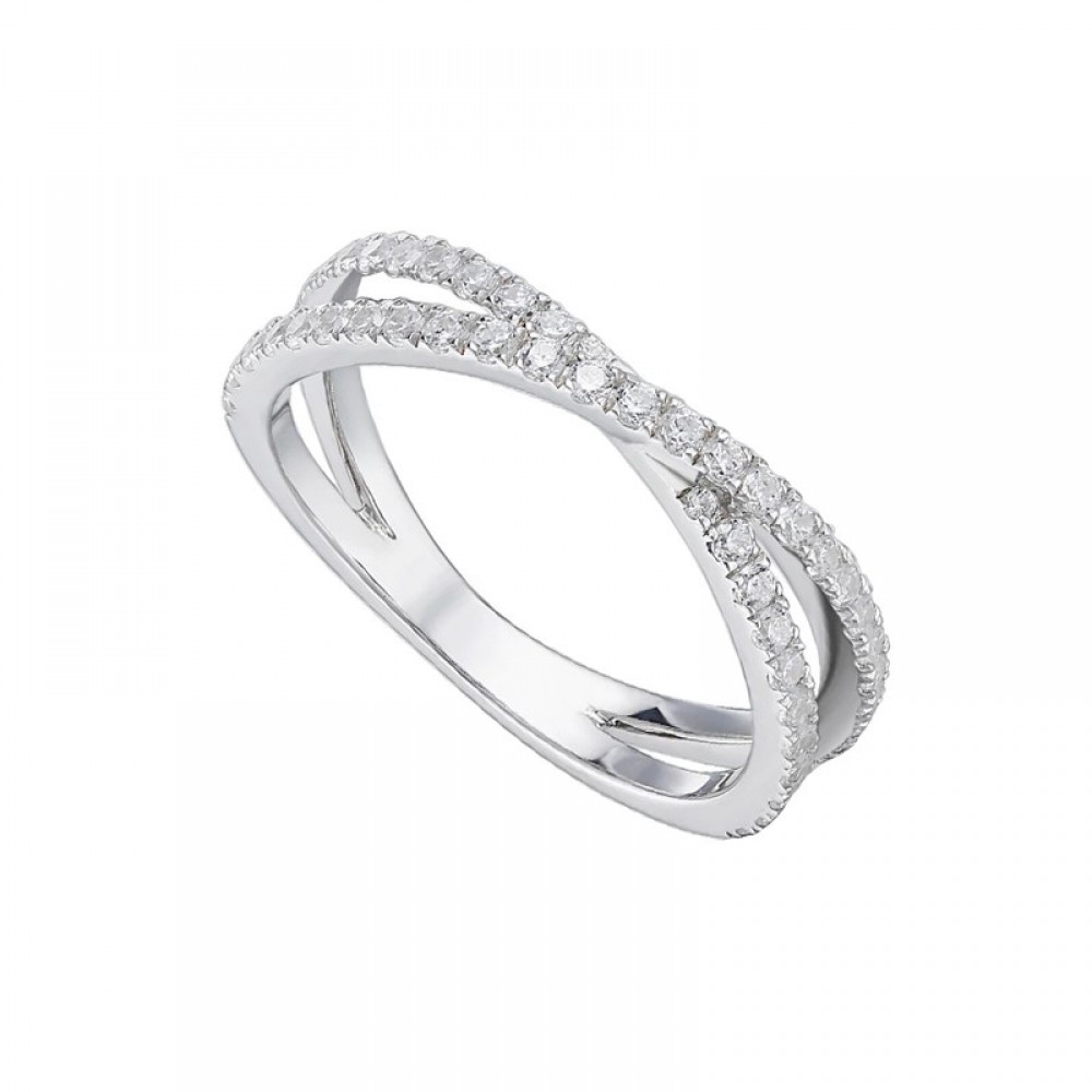 Δαχτυλίδι με χιαστί σχήμα διακοσμημένο με πέτρες ζιργκόν σε λευκό χρώμα