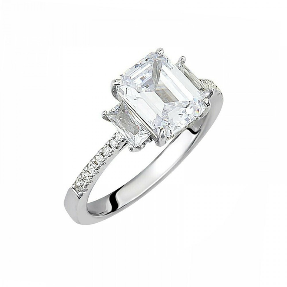 Ασημένιο δαχτυλίδι μονόπετρο με ορθογώνιες πέτρες ζιργκόν