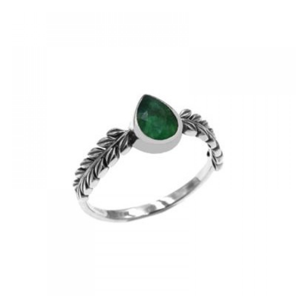 Δαχτυλίδι με σχέδιο κλαδί και ημιπολύτιμη πέτρα σμαράγδι