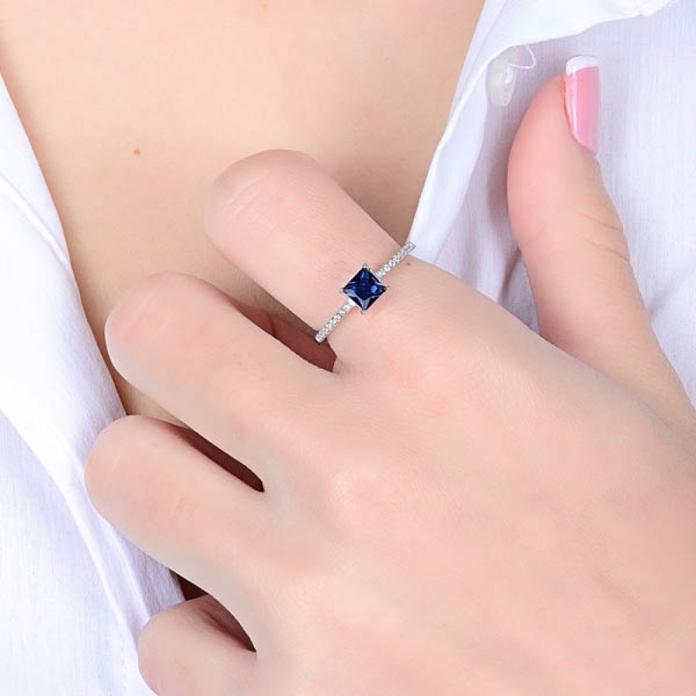 Ασημένιο δαχτυλίδι με μπλε τετράγωνη πέτρα