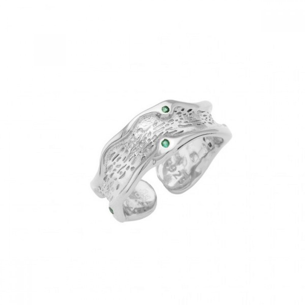 Δαχτυλίδι με ακανόνιστο σχήμα και μικρές πράσινες πέτρες ζιργκόν