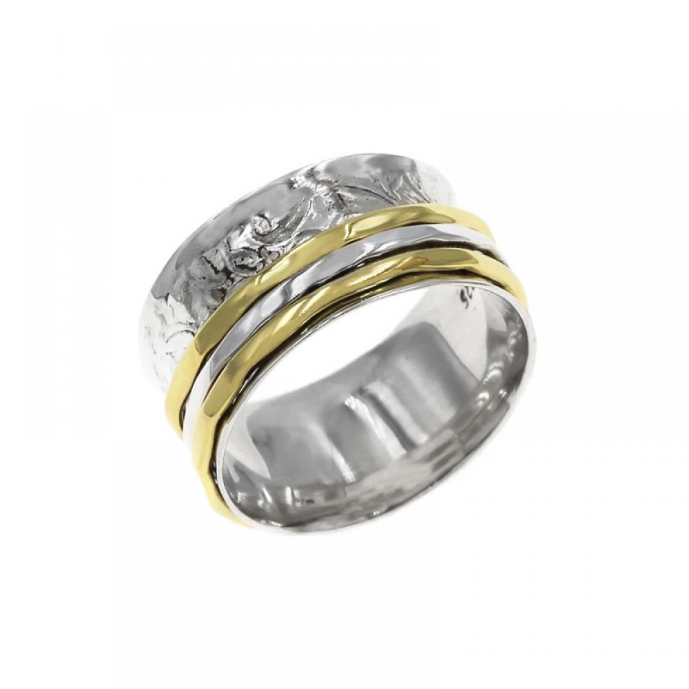 Ασημένιο δαχτυλίδι με σκάλισμα και τρία περιστρεφόμενα βεράκια (spinner)