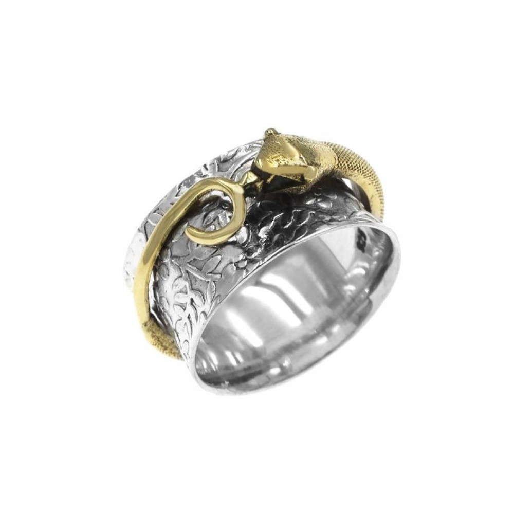 Ασημένιο (spinner) σκαλιστό δαχτυλίδι με περιστρεφόμενο φίδι σε κίτρινο χρυσό
