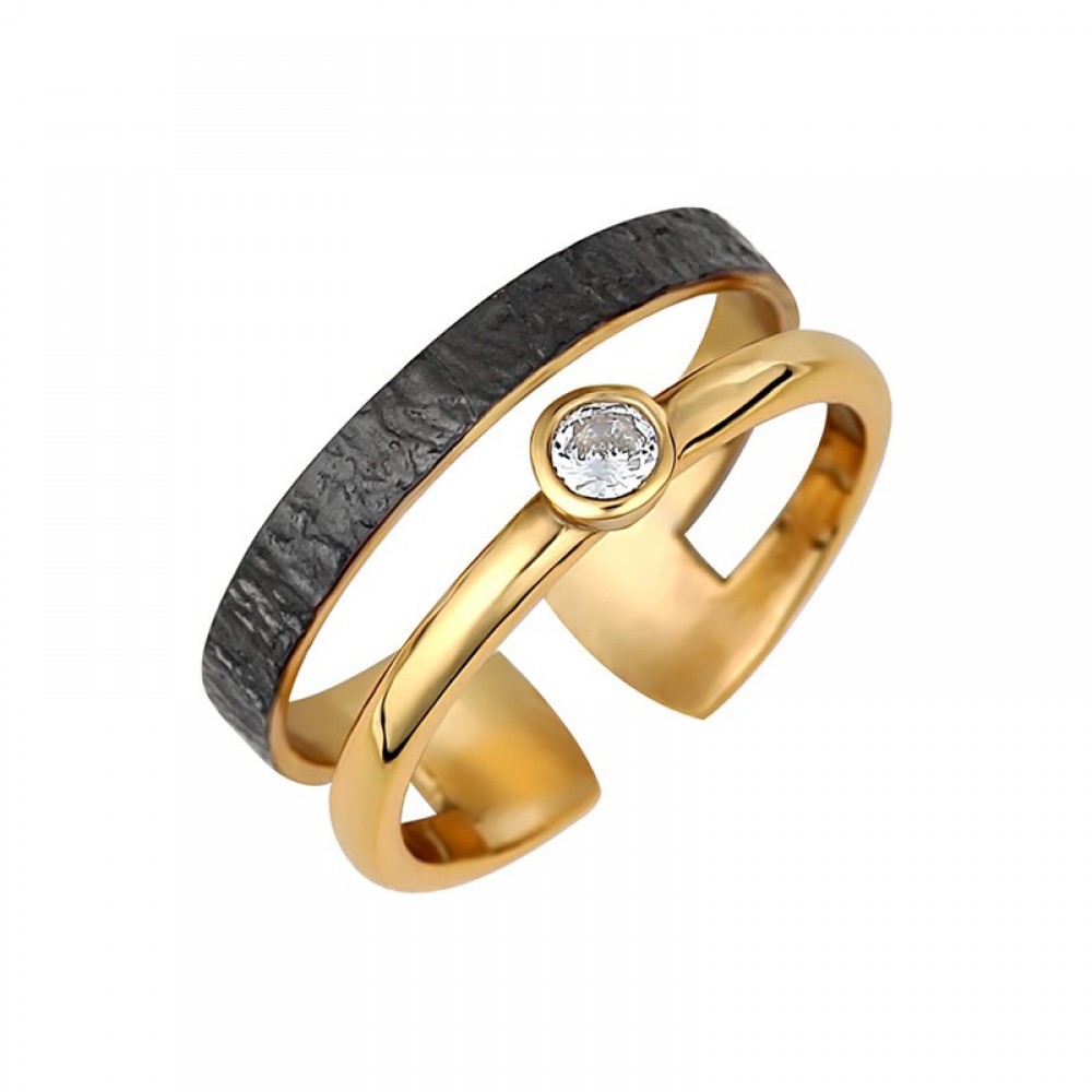 Χειροποίητο δαχτυλίδι διπλή βέρα με λευκή πέτρα ζιργκόν και μαύρη πατίνα