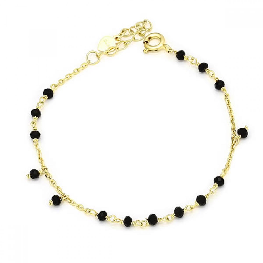 Ασημένιο και επιχρυσωμένο βραχιόλι με μαύρες χάντρες
