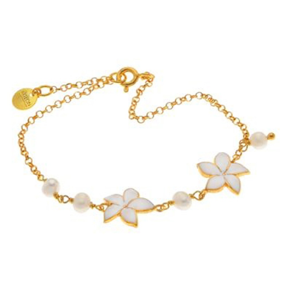 Βραχιόλι με λευκά λουλούδια και μαργαριτάρια
