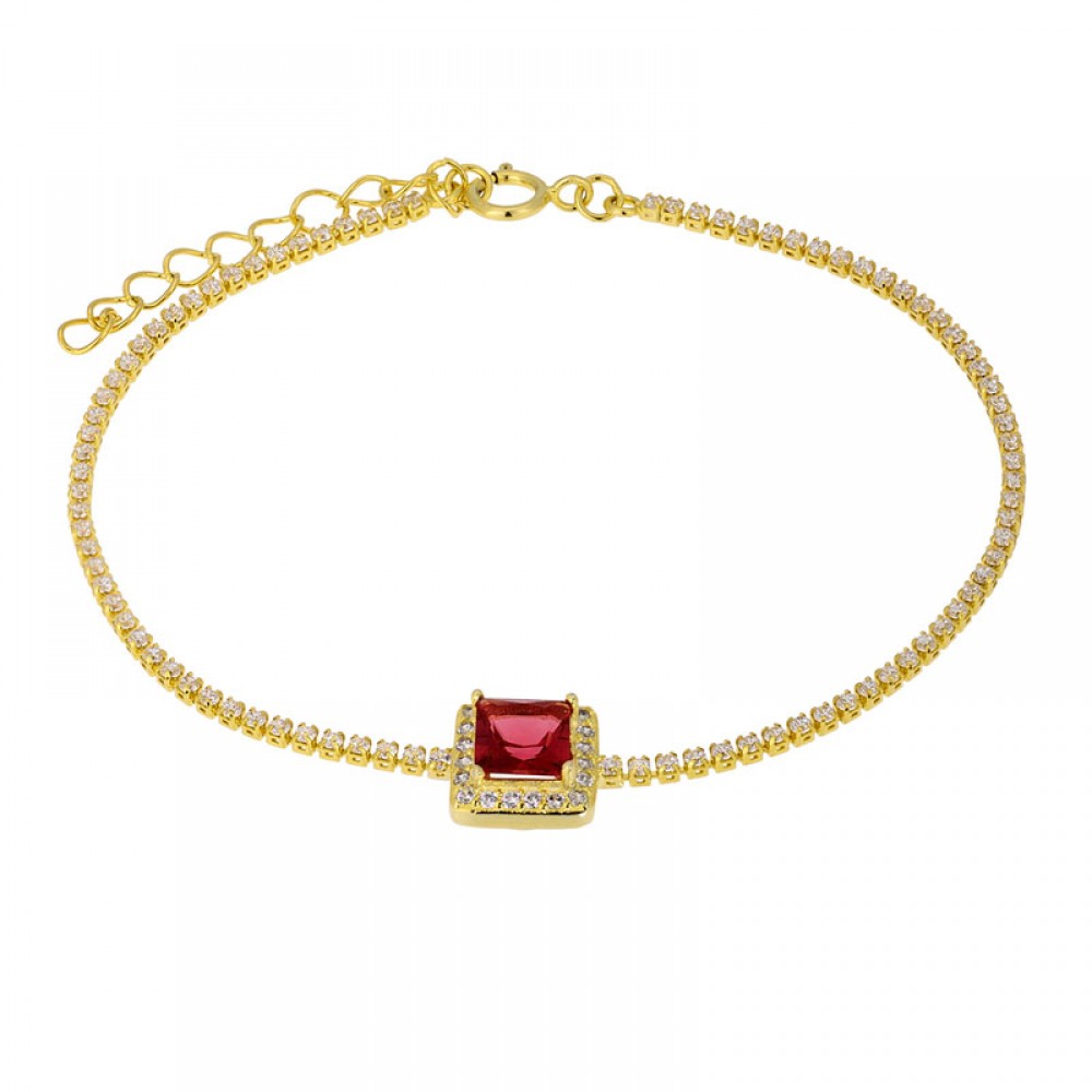 Ασημένιο και επιχρυσωμένο βραχιόλι ριβιέρα με τετράγωνη κόκκινη πέτρα