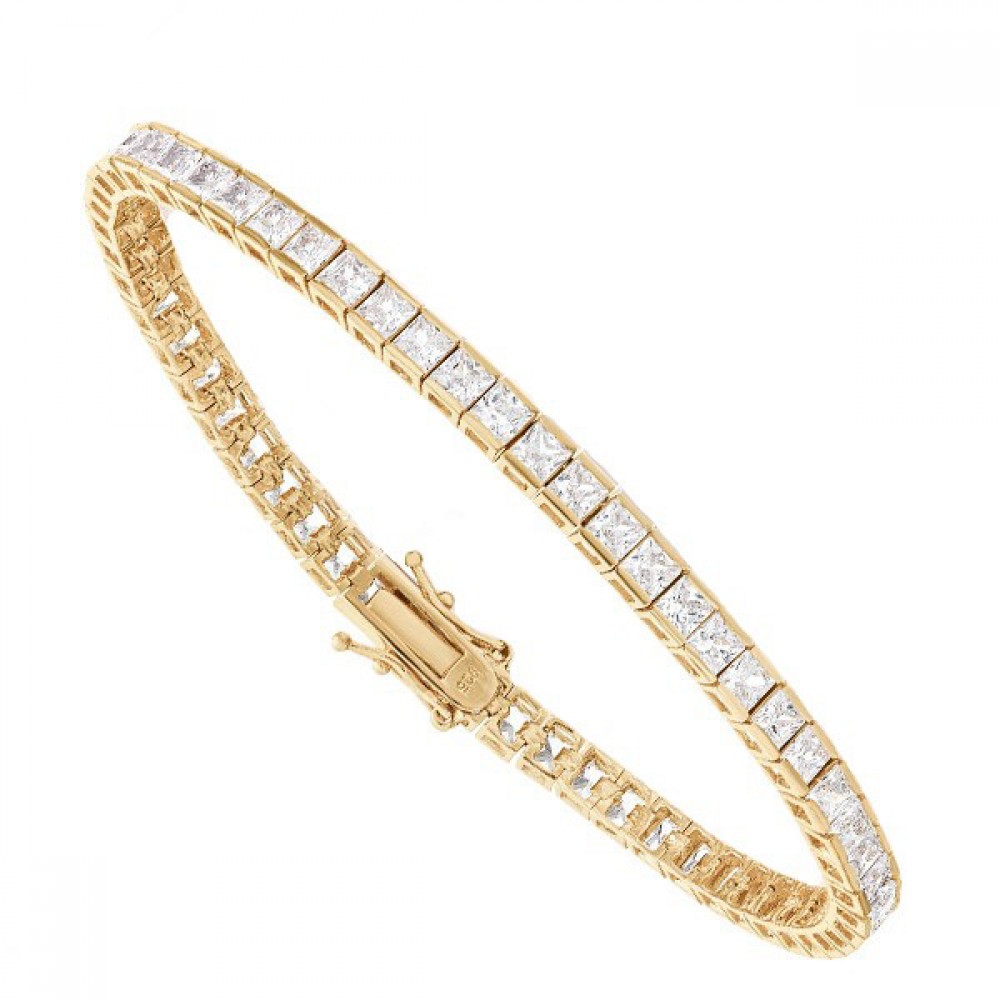 Ασημένιο και επιχρυσωμένο βραχιόλι ριβιέρα με λευκές πέτρες ζιργκόν