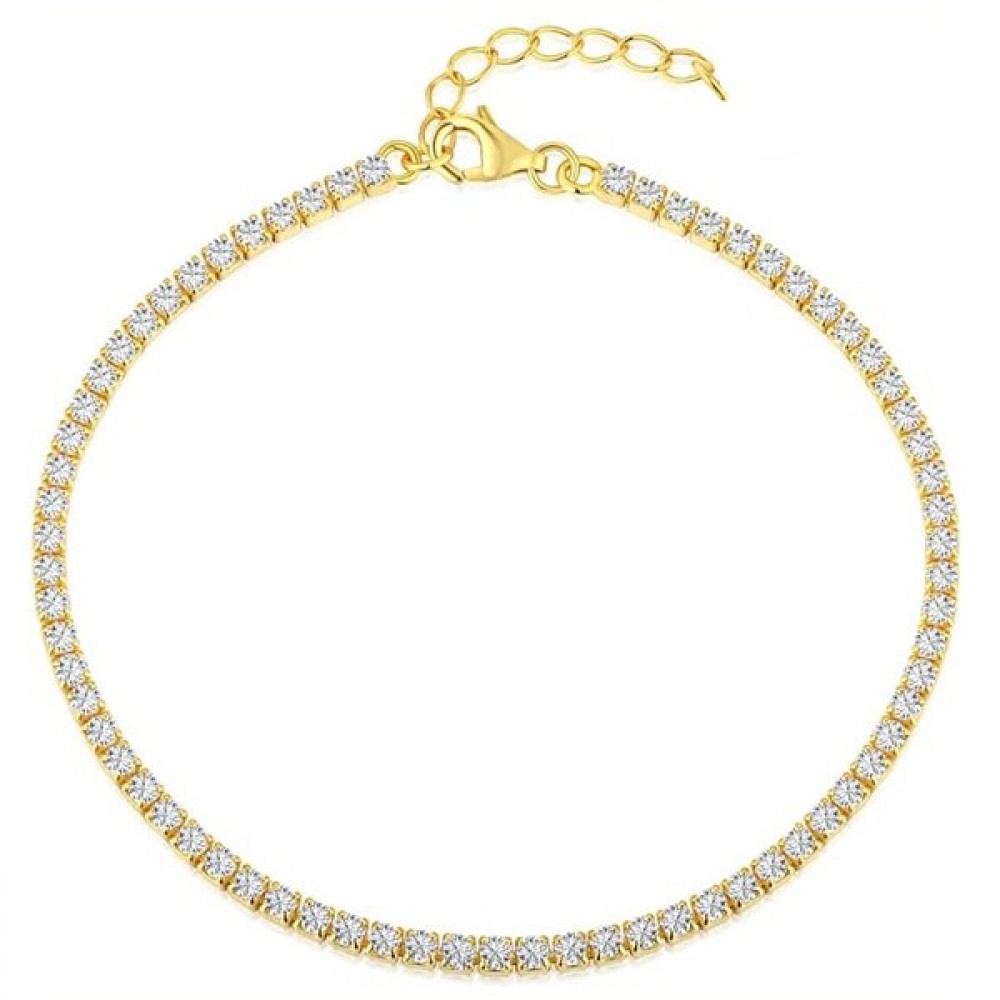 Ασημένιο επιχρυσωμένο βραχιόλι-ριβιέρα με λευκές πέτρες ζργκόν