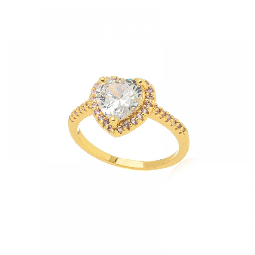 Δαχτυλίδι με σχήμα καρδιάς και λευκές πέτρες ζιργκόν