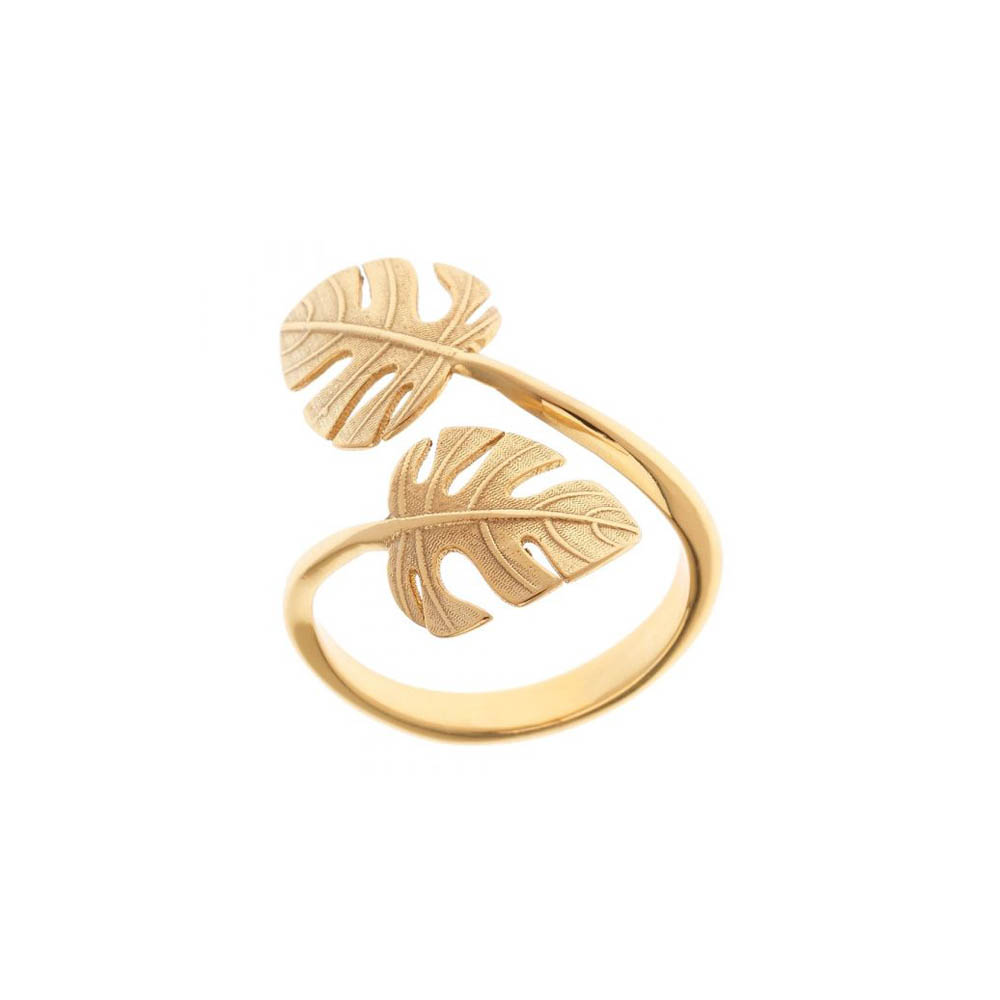 Ασημένιο επίχρυσο δαχτυλίδι με δύο αντικρυστά φύλλα.