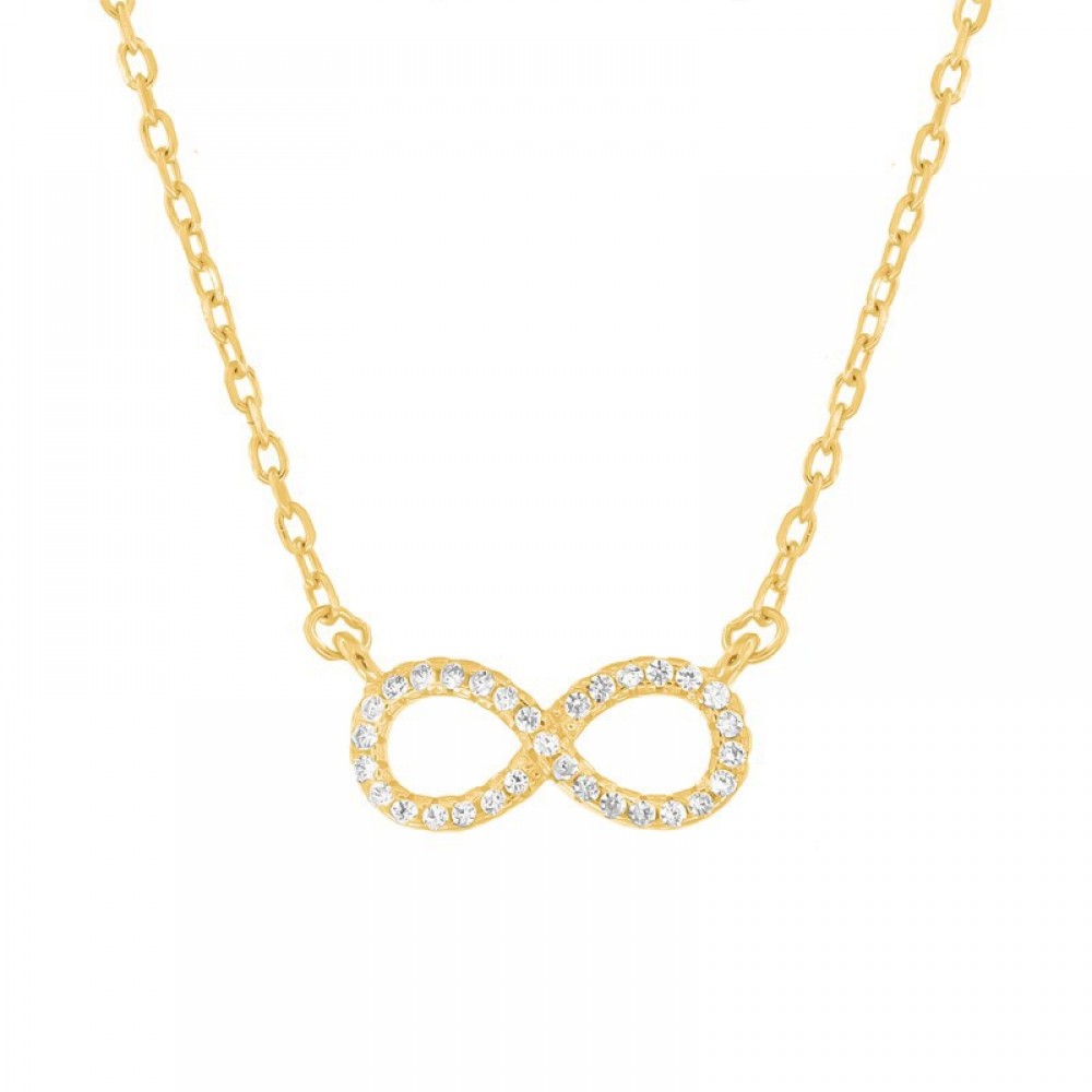 Ασημένιο επίχρυσο κολιέ με το άπειρο διακοσμημένο με πέτρες ζιργκόν