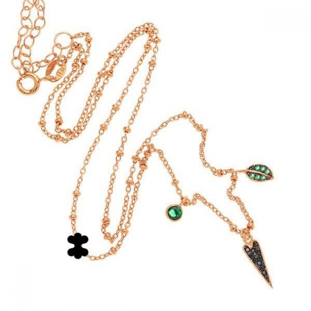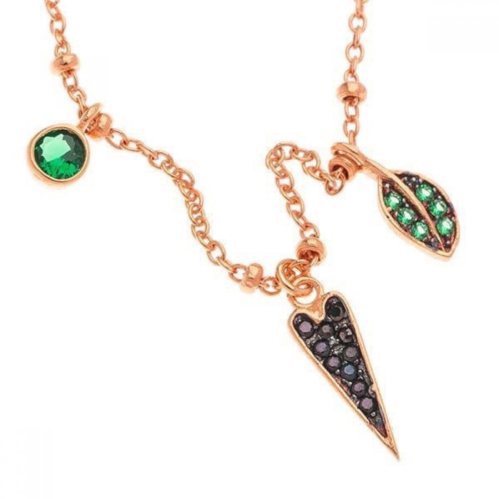Κολιέ με καρδιά και φύλλο με πράσινες πέτρες και αλυσίδα διακοσμημένη με μπίλιες