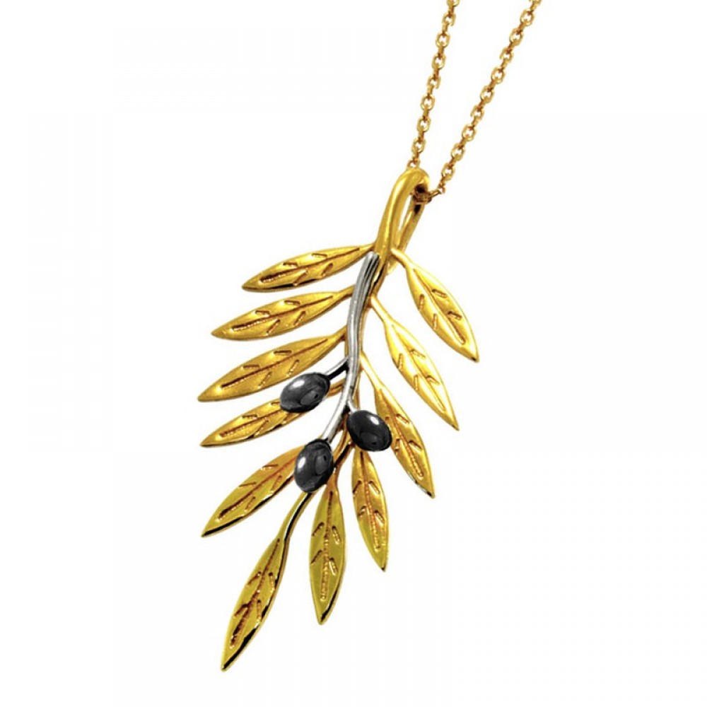 Ασημένιο κολιέ με κρεμαστό κλαδί ελιάς , χειροποίητο με επιχρύσωση 24Κ
