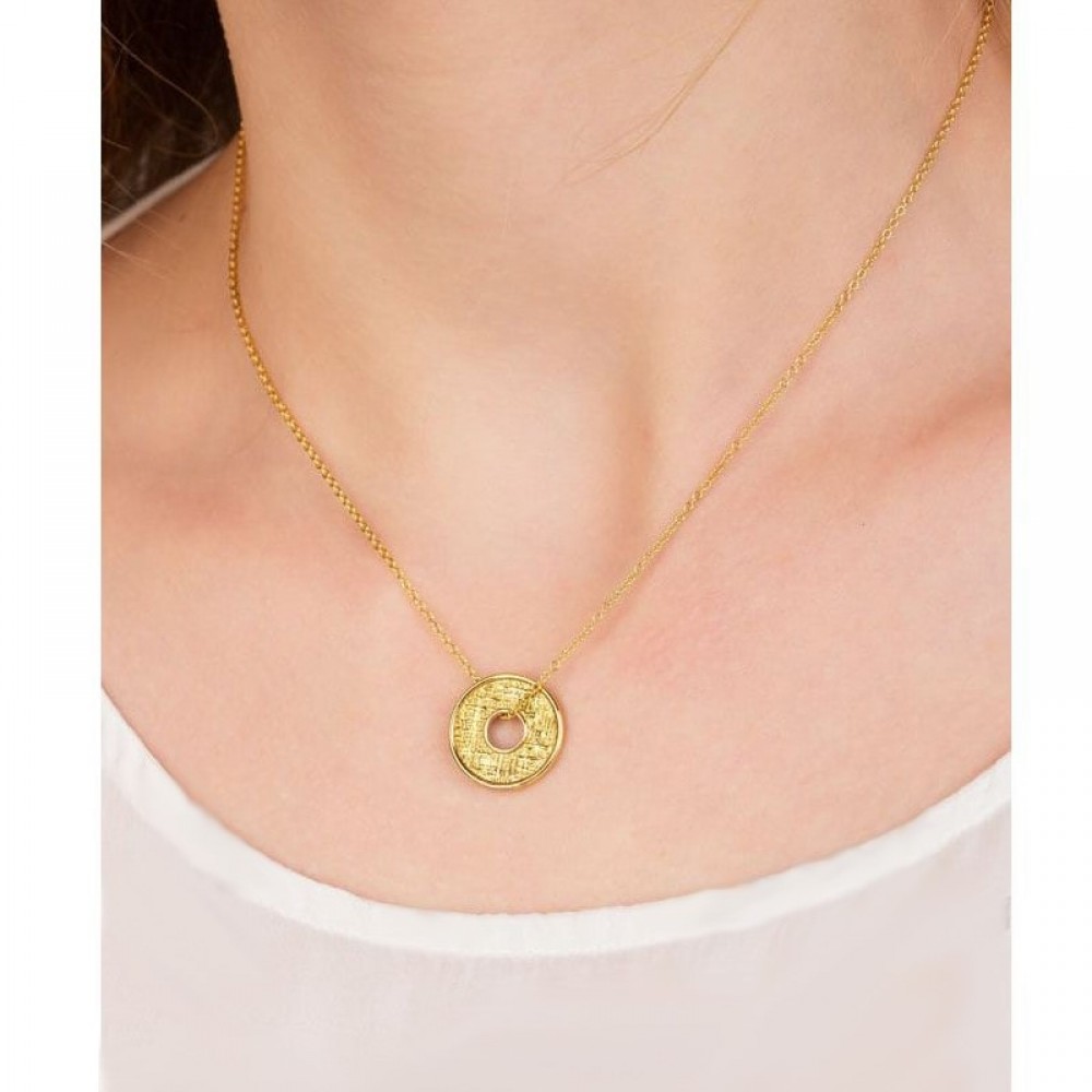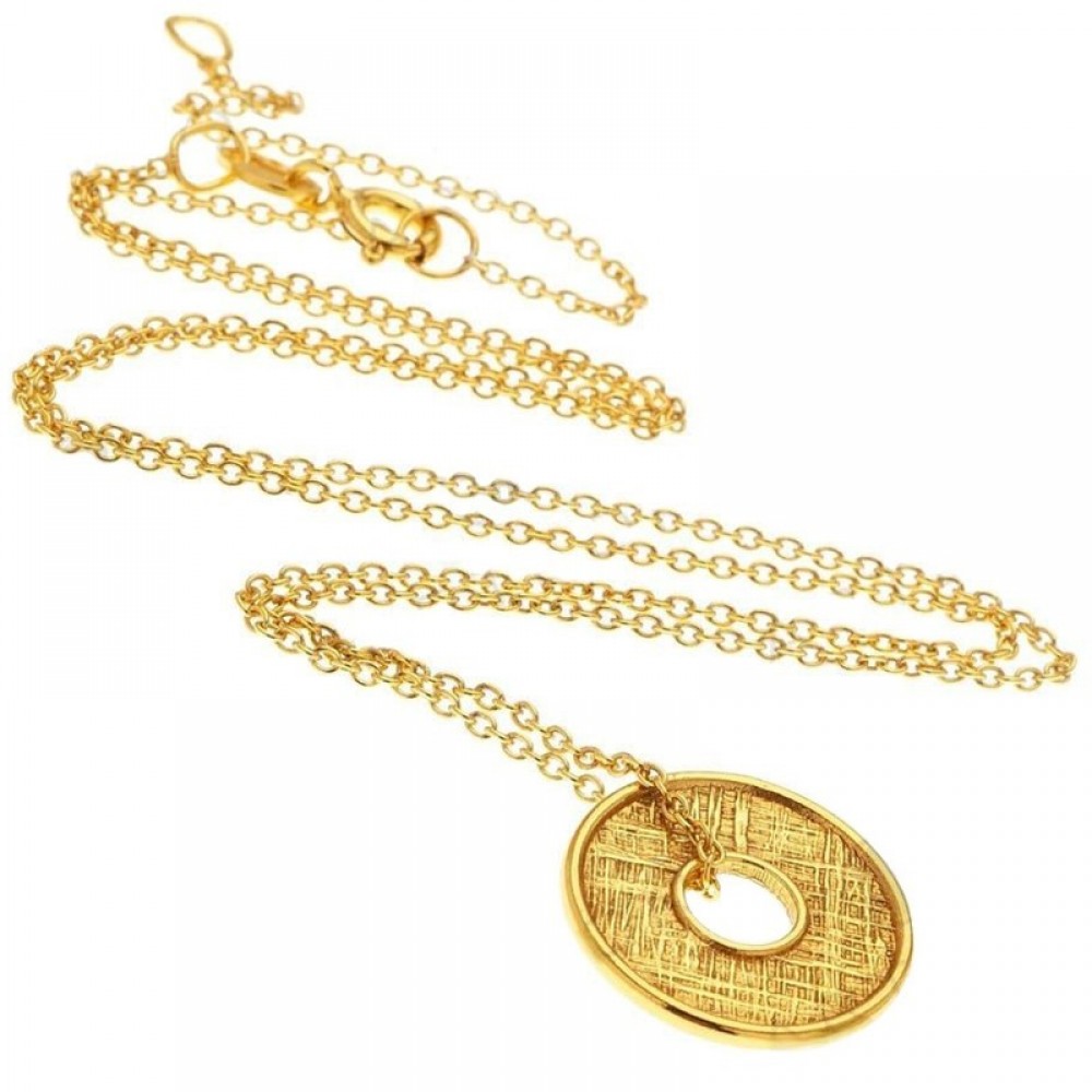 Ασημένιο με επιχρύσωση 18Κ κολιέ με φλουρί περασμένο στην αλυσίδα