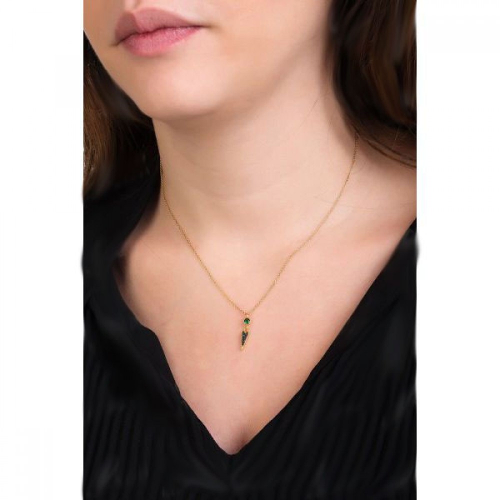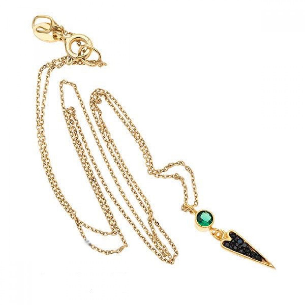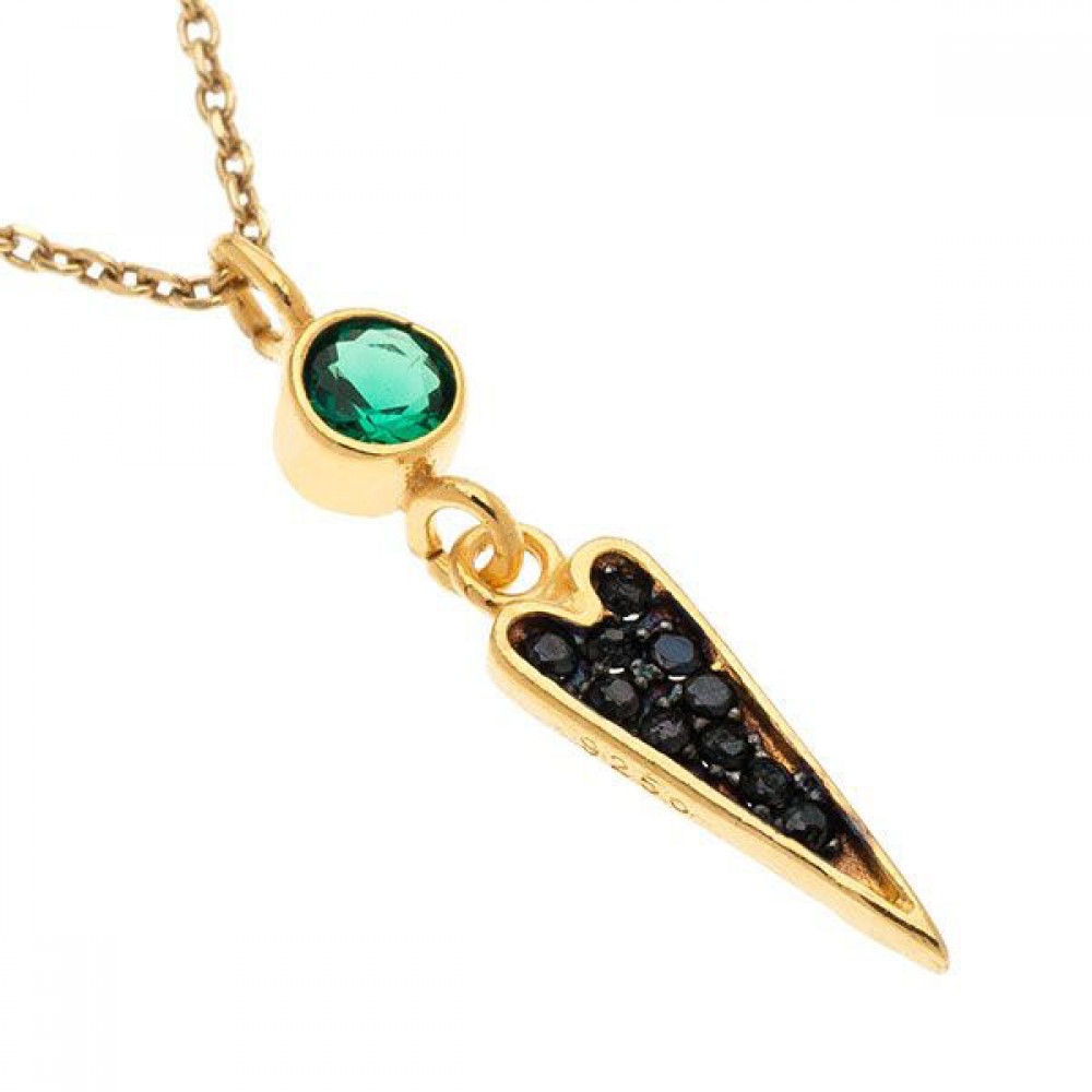Ασημένιο και επιχρυσωμένο κολιέ με μικρή καρδιά και πράσινη πέτρα