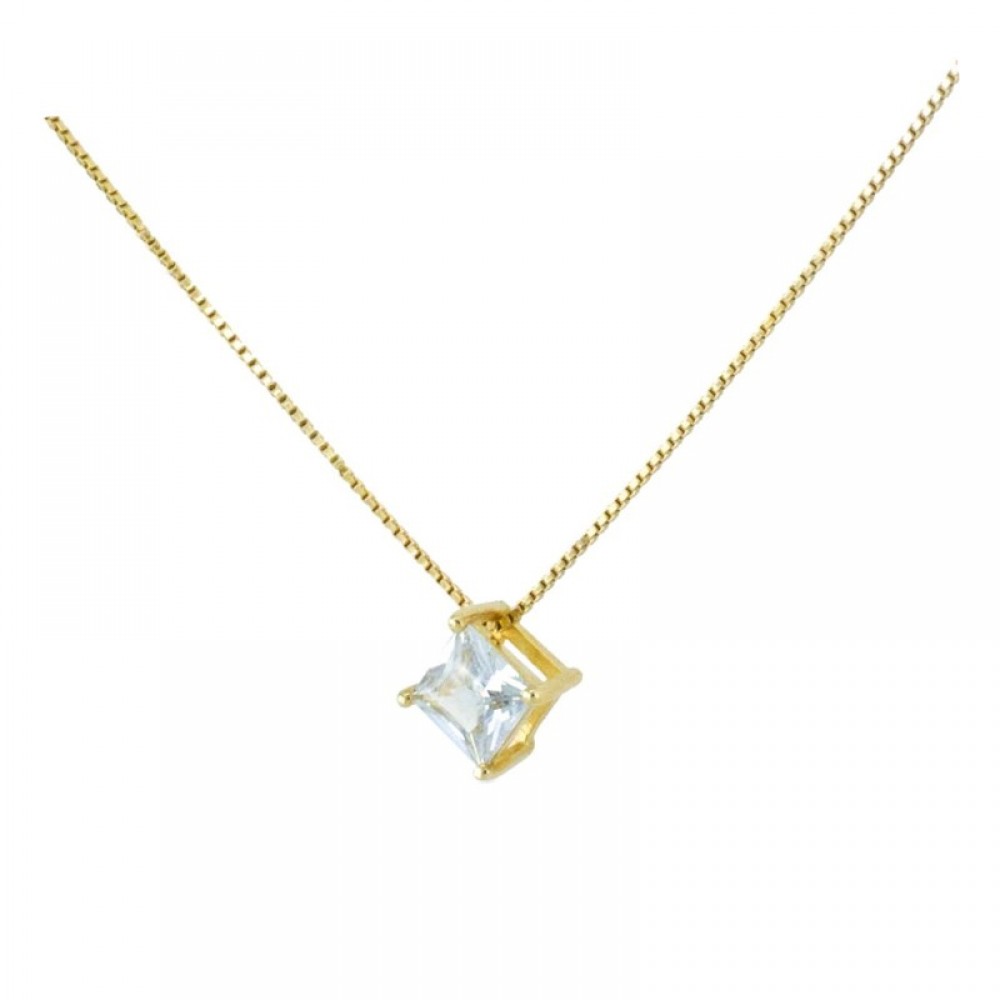 Κολιέ μονόπετρο με πέτρα ζιργκόν σε λευκό χρώμα με σχήμα ρόμβου