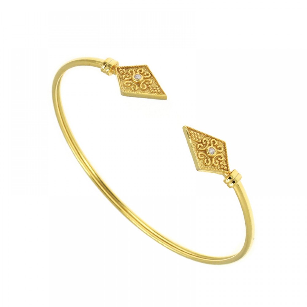 Βυζαντινό σταθερό βραχιόλι με λευκή πέτρα ζιργκόν