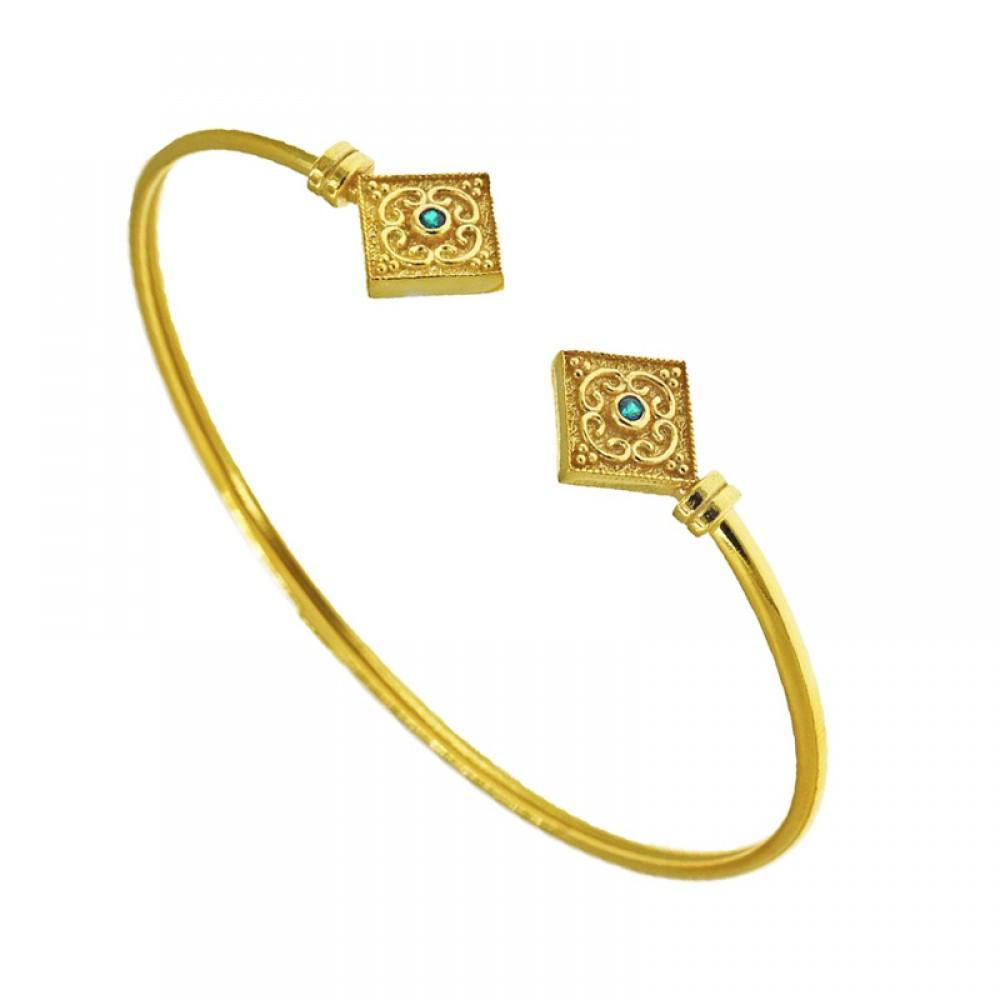 Ασημένιο επίχρυσο βυζαντινό βραχιόλι με πράσινη πέτρα ζιργκόν