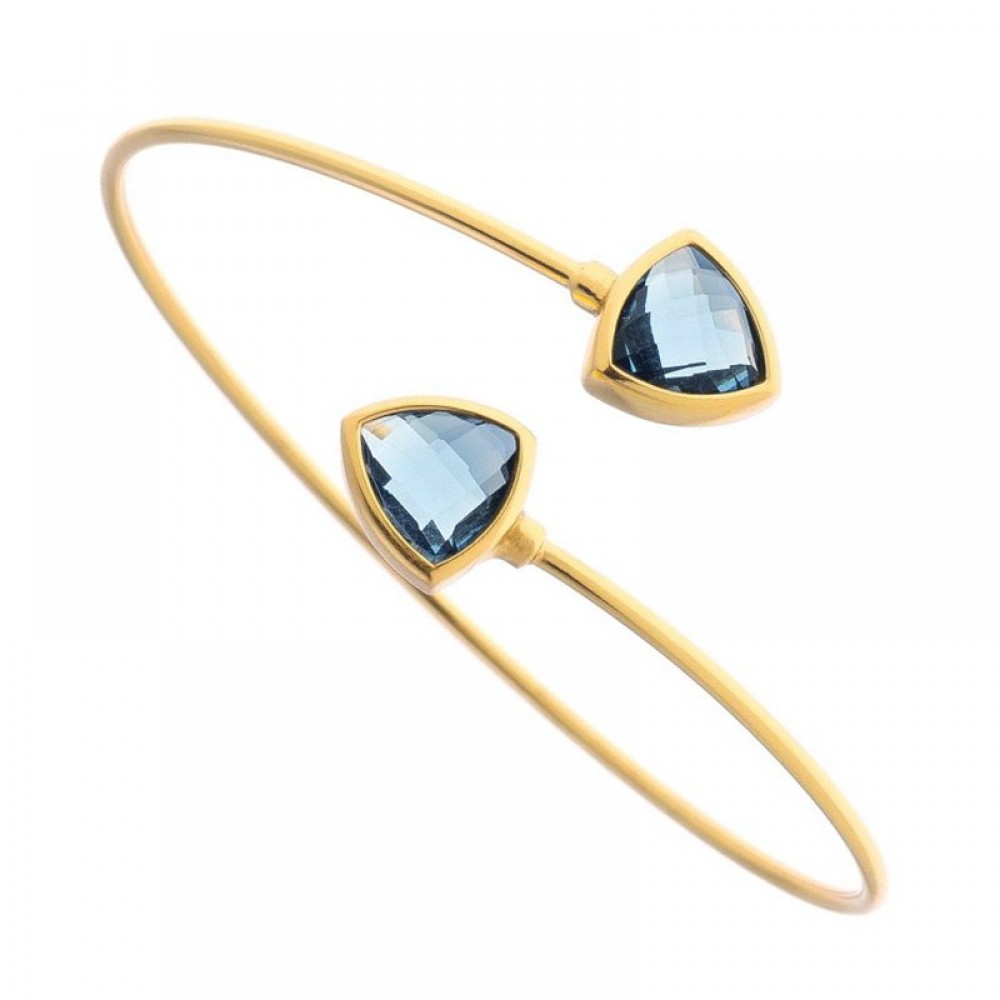 Ασημένιο με επιχρύσωση 18Κ σταθερό βραχιόλι με μπλε κρύσταλλα